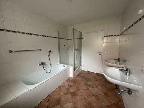 Im Jahr 1997 ist eine weitere Wohnung mit einer Wohnfläche von ca. 139,60 m² in die bestehende Hofstelle eingebaut worden. Diese Wohnung bietet den Vorteil der Barrierefreiheit. Insgesamt stehen Ihnen hier drei Zimmer, das Wohn- und Esszimmer, die Küche, ein Abstellraum, der Windfang, das Badezimmer mit Badewanne und Dusche und ein Gäste-WC zur Verfügung. Vom Wohnbereich gelangen Sie zudem auf die Terrasse mit Süd-West Ausrichtung und den Blick ins Freie.