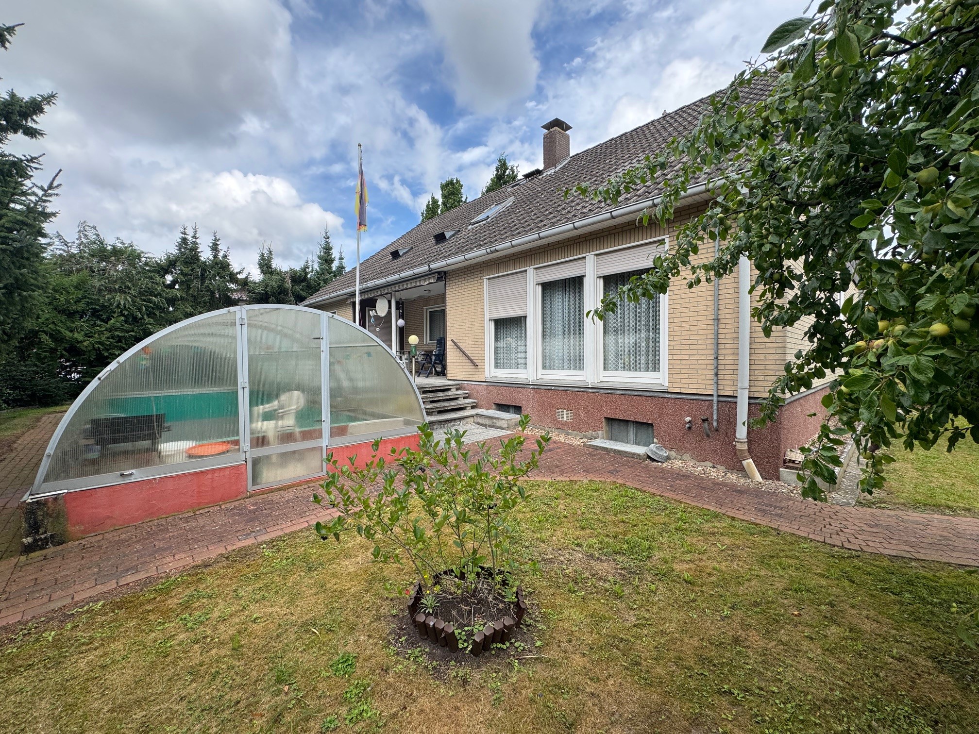 Entdecken Sie Ihr Traumhaus in Bad Oeynhausen! Dieses großzügige Einfamilienhaus bietet mit seinen 6 Zimmern und einer Wohnfläche von 181,6 m² auf 2 Etagen viel Platz für Ihre Familie. Das Haus steht auf einem beeindruckenden Grundstück von 793 m², das mit einem kleinen Teich und viel Grünfläche zum Entspannen einlädt.