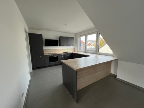 Das Dachgeschoss erreichen Sie ganz bequem mit dem Aufzug und zwar zudem barrierefrei. Die ETW teilt sich auf 3 Zimmer, die Küche, das Badezimmer, das Gäste-WC, den Flur, einen Abstellraum und den Balkon auf.