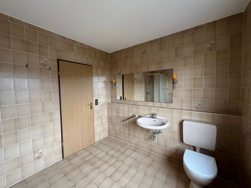 Das gesamte Erdgeschoss sowie das Badezimmer mit Dusche und Badewanne im Obergeschoss ist gefliest. Die drei Zimmer im Obergeschoss sind mit Laminat ausgelegt.